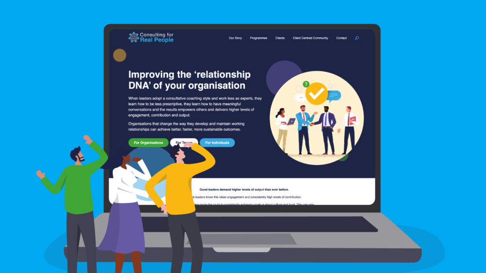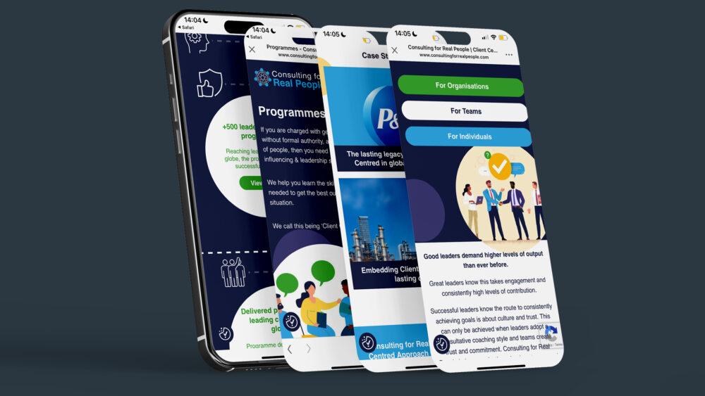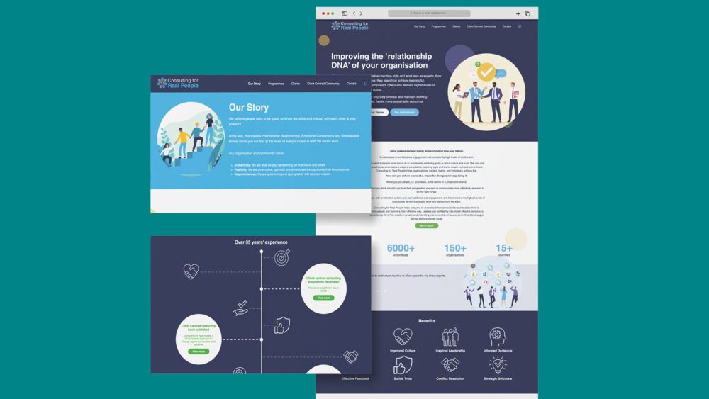 Consulting for Real People delivers client centred programmes that change the way leaders communicate, helping them to have great conversations and develop phenomenal relationships. Their clients say the client centred programme is ‘life changing’ and ‘one of the best development programmes ever’. Such a unique business with an amazing product required a website that would reflect their expertise, professionalism and the value they bring to high-level decision makers. The goal was to design a modern, user-focused website that showcases their programs, engages their target audience, and supports their continued growth.